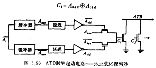 VLSI SRAM地址变化探测法(ATD)电路及措施这是降低SRAM维持功耗的另一有效措施。上述的SRAM在维持状态下不但有列电流功耗,还有其他外围电路的功耗,即使采用DWL技术,SRAM的维持功耗仍比DRAM的大得多。为了大大降低维持功耗,可以模仿DRAM电路,采用时钟控制方式。例如用动态译码器,在维持状态下所有字线均为低电平(可见本章第四节中DRAM的译码电路),因此就不存在列电流。在这种工作