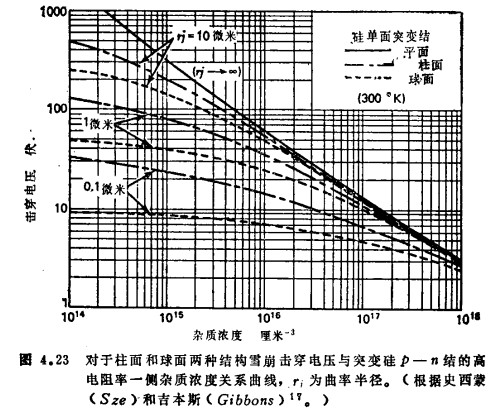 MOS管P-N结曲率击穿电压,由于几何因素的影响,扩散平面p-n结的典型雪崩击穿电压远低于图4.20对一维硅阶跃结给出的数据。用常规平面工艺技术形成p-n结的方法是:使高浓度的杂质原子通过二氧化硅掩膜层上的矩形“窗口”向极性相反的硅衬底扩散。采用这种工艺技术时,会从“窗口”边缘进行横向扩散,其扩散距离近似等于在硅衬底本体内进行垂直扩散的距离。因此,在这样的平面结构中,横向扩散量可与结深相比较,而且