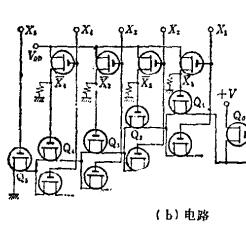 MOS定时脉冲电路,台式电子计算机主要是串行同步式计算机,其中不可缺少的定时脉冲发生电路是规定信息流动的时间位置,对计算机进行时间分配的电路,它用来控制运算、存贮、显示等的驱动。换句话说,是构成计算机的中枢电路。此种电路以振荡器发生的方波脉冲作为信号源,确定时间位置的时钟脉冲,表示二进制数的位的t1、t2、t4、t8,表示十进制数n位的等是其产生的输出信号。图3.81给出计算机时间分配定时脉冲的一