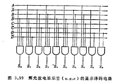 显示电路属于串行同步式计算机中的台式机所用的显示电路系统,如图3.97所示,是将各位显示时间错开进行显示的扫描显示方式25)。因而,通常只显示1位,具有低功耗和构成元件少等特点。所用器件有暂存二进制数码的移位寄存器、转变为十进制数的译码器以及规定显示数位的数字计数器。因数字计数器可由前节所述的定时脉冲发生电路构成,此处只谈译码器及其驱动电路。(1)辉光放电管显示电路及其驱动电路辉光放电管因其特性要
