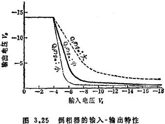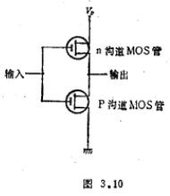 MOS集成倒相器电路,现在对所有电路的基础——倒相器加以说明,作为应用MOS集成电路的例子。为便于说明起见,设晶体管的形式为P沟道增强型,电压电平用正逻辑。倒相器电路由跨导gm互不相同的两个晶体管Q1、Q2串联组成,因系集成电路,使用同一衬底,如图3.23所示。负载管Q1的栅上所加电压有VGG=VDD的情形,也有|VGG|>|VDD+Vth|的情形。前一种MOS负载管的工作状态为饱和型,此处除非特