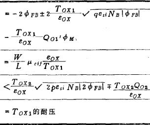 MOS晶体管特性集成电路是由晶体管组合而成的,因而在集成电路设计中希望单个晶体管的特性简单。为此,多采用粗略近似的简单表达式。其要点如下。这类简单的表达式之一是,流过MOS品体管的电流有与饱和区有效栅电压的平方成正比1)的关系。这一关系基于这样的事实;当半导体内感生的载流子电荷Qs与有效栅电压成正比,漏电压在源端产生的电场也与有效栅电压成正比时,特性曲线趋于饱和。关于电流的另一近似是漂移电荷的速度