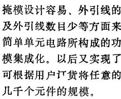 MOS大规模集成化的优点,除了3.2.1节所述的一般优点外,还有下列优点。与双极型晶体管相比;MOS晶体管的制造工艺简单,而且仅用同一种元件就可实现复杂的功能,所以MOS大规模集成电路成品率高,有利于大规模集成化。MOS大规模集成化。由于MOS集成电路的阻抗高,可以藉助与源、漏扩散区同时制作的穿接区,实现立体交叉布线而不影响电路的直流特性。因此,在需要作复杂布线时,也毋须使用会影响成品率的高难度技