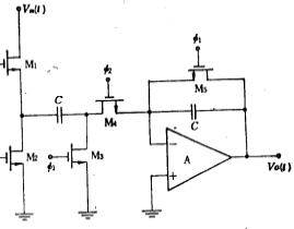 开关电容全波检波器和峰值检波器,利用开关电容电路构成全波检波器和峰值检波器,前者是将输入信号Vin(t)变换成它的绝对值| Vin(t)|,后者是检测输入信号的蜂值。比较简单的全波检波器如图6.4-3所示。当输入信号Vin>0时,运放A1输出电压为负值,M1截止,由电容2C构成的开关电容电路不起作用,此时,电路为同相放大,其增益为1,即Vo(t)=Vin(t);当输入信号Vin<0时,运放A1输出