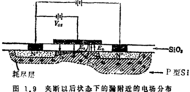 MOS场效应晶体管夹断以后的工作状态解析,上节已经说明,夹断以后区域的理论公式的极限为:恰好夹断点处的漏电导为零。如果在漏电压进一步增加到达夹断以后的区域时,仍机械地延续使用上述理论公式,则将得到漏电导为负的结果,但实际上,虽持续电流的饱和现象,漏电导并不为负值。将夹断以前区域的理论公式推广应用于夹断以后的区域,就会得到错误的结果。其理由是在夹断以后的漏侧,如以N沟道的情形为例,若只考虑电子,感生