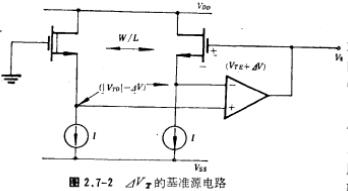 讲述晶体管热电压为基准的偏置电路分析。通常定义热电压=image.png,式中image.png为玻尔兹曼常数,T为绝对温度,q为电子电荷。以热电压为基准的偏置电路其典型电路形式如图2.7-4所示。图中晶体管Q2的发射区面积是晶体管Q1发射区面积的n倍,M1~M4管构成反馈回路,使流过Q1和Q2的电流相等。由图可得