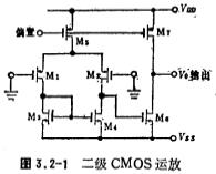CMOS运放的工作原理与参数,CMOS运放的电路结构确定后,最重要的是确定运放各级的工作电流与工作电压。为使运放工作正常,首先要保证运放各级放大器中的场效应管在静态和规定的动态条件下,处于饱和区;其次,在静态条件下,输入端等于零电压时,输出端电压为零,即要有小的失调电压;第三,根据增益、输出动态幅度等确定各级放大器及偏置电路的工作电流。我们知道,MOS管的工作电流、电压决定于工艺参数和沟道的宽长比