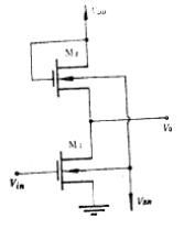 NMOS单级放大器,1、全增强型NMOS 放大器(图2.4-1a)(1)放大器的输入-输出传输特性曲线,放大器有三种工作状态:i、M1管的输入电压image.png小于开启电压image.png时,即image.png管均截止,输出电压VO为高电位。M2管截止时,有NMOS单级放大器,输出电压VO值在VDD-VT1<VO<VDD范围内。