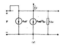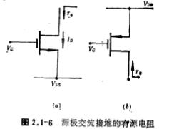 N沟道耗尽型作为有源电阻,其连接方式(即栅源短接)和V-I特性分别如图2.1-4、b所示。N沟道耗尽型作为有源电阻由图可知,当管子进入饱和区后,漏源两端阻抗为高阻抗。用图2.1-5交流小信号等效电路,可求得漏源端的等效阻抗ro。