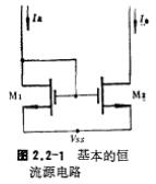 MOS恒流源电路在MOS模拟集成电路中,恒流源电路常作为偏置电路以及作为放大器的有源负载.模拟集成电路性能的优劣常与恒流源电路的恒流特性密切相关。MOS场效应管恒流源的电路形式与双极型晶体管电路基本相似。现介绍种常用的MOS管恒流源电路。(一)基本的恒流源电路基本的但流源电路如图2.2-1所示,图中的IR为参考电流,IO为输出电流。MOS管M1工作在饱和区(VDS=VGS),若MOS管M2的,那么