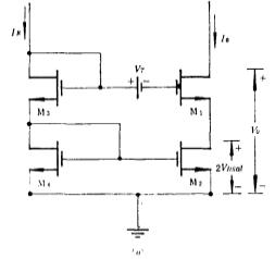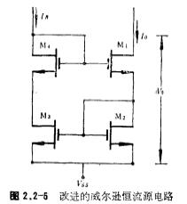 高输出阻抗的恒流源电路,如图2.2-2所示。它与图2.2-1恒流源电路相比增加了MOS管M2、M4。由于增加了M3、M4管,使该恒流源电路具有很好的恒流特性及高的输出阻抗ro.由图可知M3和M4管使M1管的VDS,和M2管的Vos,相同或近似相同。