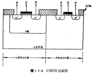 MOS场效应管的类型,这种管子以n型半导体作为衬底材料、源和漏区是p+扩散区,将图1.1-3中的n+换成p+,p型硅换成n型硅,而且n沟道换成p沟道,即得P沟道MOS场效应管结构剖面图.它也属于增强型管子,因为在栅极电压为零时,源和漏区之间不存在导电沟道。在正常工作时,源一般也接地,漏区接负电位。栅极上加负电位时,在n型半导体表面有一个指向外面的表面电场,使表面耗尽,甚至可以反型,当image.p