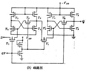 MOS D触发器,D触发器特点,D触发器工作原理,D触发器是一个输入端的触发器,其特点是输出与输入具有相同的状态,而与触发器原状态无关。基本的D触发器,是一种信息暂时寄存电路,如图3-9所示。从逻逻辑图上看到,D触发器是在R-S-T触发靠的前面加了一级倒相器,并把这级倒相器的输入端与R-S触发器的S端连接;把它的输出端(即image.png)与R-S触发器的R连接。从逻辑图上看到,当D输入端为“1