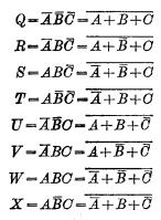 MOS 三变量译码器,三变量译码器,三变量译码器结构,图3-15表示一个多路数据传输控制系统,图中的MOS管image.png作为传输门。如果要把数据image.png一个个传输出去,就要用八根控制线分别控制八个门管的栅极。但采用译码器控制,只要三根线就可以了。因为三个二进制变量,可以组成八个状态,即MOS 三变量译码器。