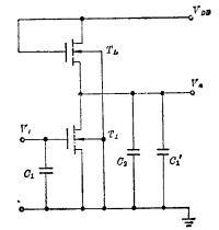 E/EMOS瞬态响应,MOS晶体管理论上是一种很快的开关器件,然而实际MOS电路的开关速度要比理论慢得多,其主要原因是电路存在着较大的寄生电容。图2-19是一个饱和负载倒相器电路,在图上标出了各种寄生电容。其中image.png表示输入端的沟道电容、栅源电容和布线电容的等效电容;image.png表示输出端的栅漏电容、源漏电容和布线电容的等效电容;image.png表示下一级电路的输入电容。ima