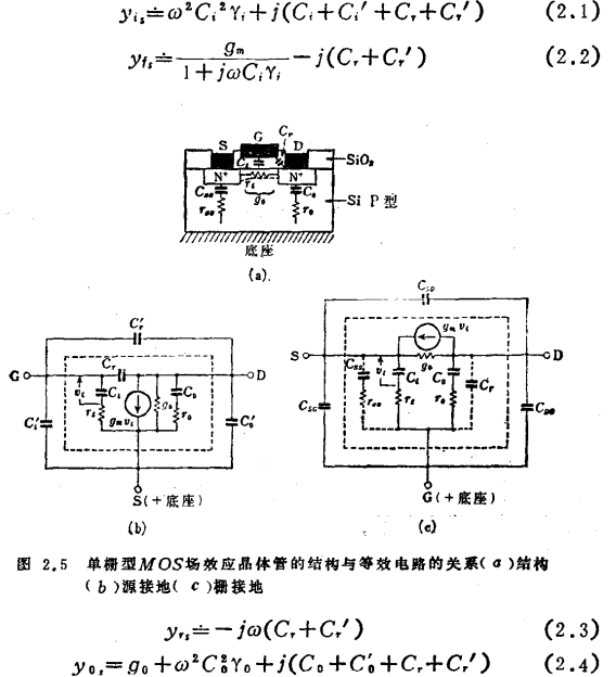 应该注意,当栅接地时,图2.5(C)等效电路的输入导钠(只考虑本征部份,略去Css)为