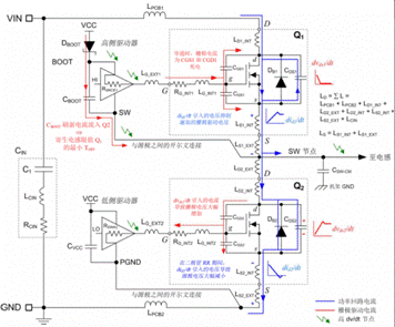 开关电源产生振铃的主要原因在于非理想器件存在功率级寄生电容、电感。所谓谐振,即:在MOS管开通、关断切换的过程中,寄生电感将能量传递给寄生电容进行充电,充电结束后寄生电容又释放电能给寄生电感储能,如此循环往复。