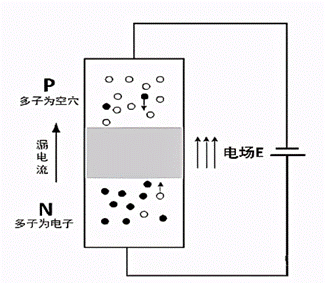 反偏时,多子在电场作用下运动使PN结加宽,电流不能通过,反向截止;二极管反向截止的原理就是这样。但是,此时少子在内外电场的作用下移动,并且耗尽层电场方向使少子更容易通过PN结,形成漏电流。