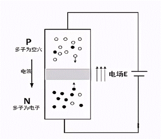 此时P区多子“空穴”在电场的作用下向N区运动,N区多子电子相反,使耗尽层变窄至消失,正向导电OK,也可以理解成外加电场克服耗尽层内电场,实现导电,该电压一般为0.7V或0.3V。二极管正向导通的原理即是如此。